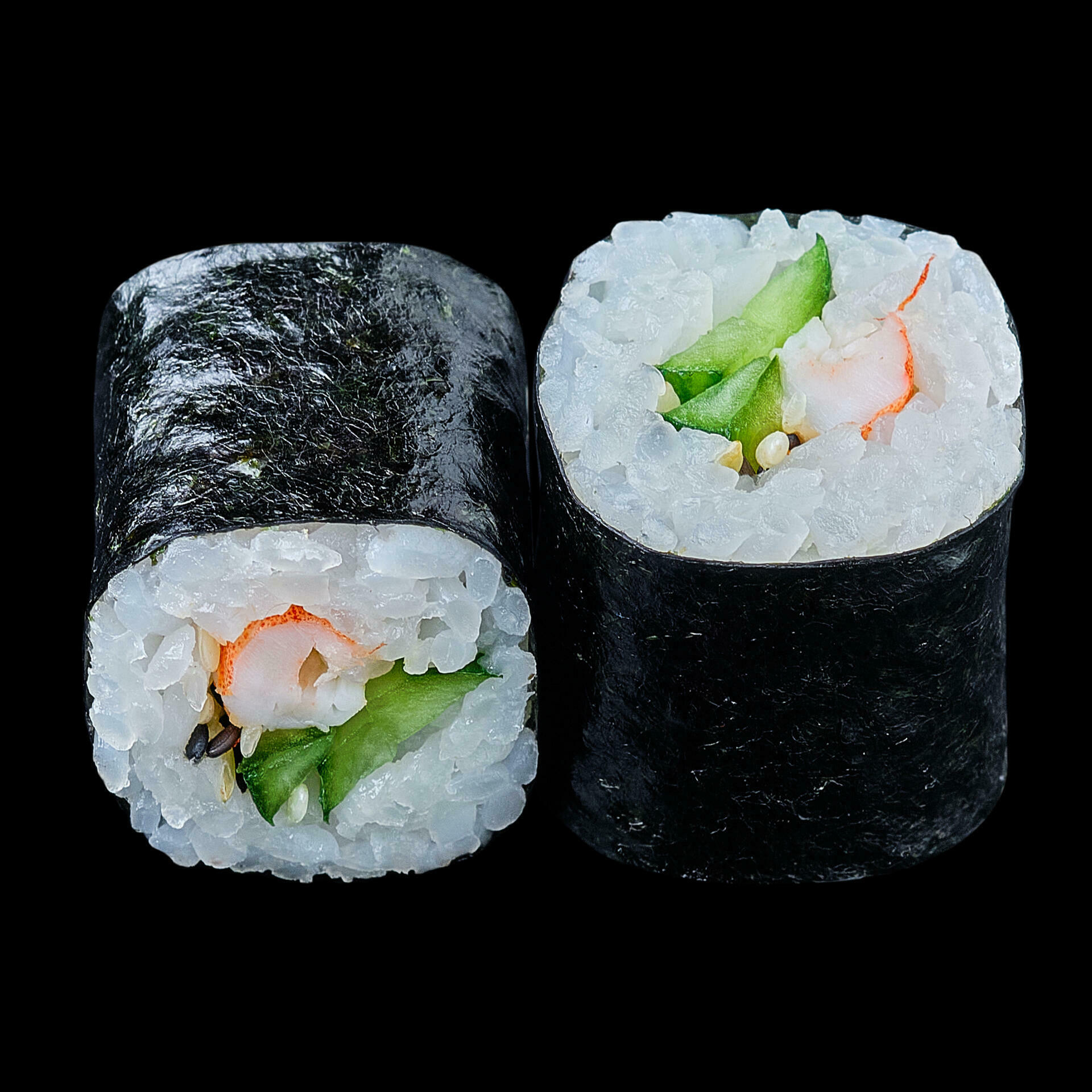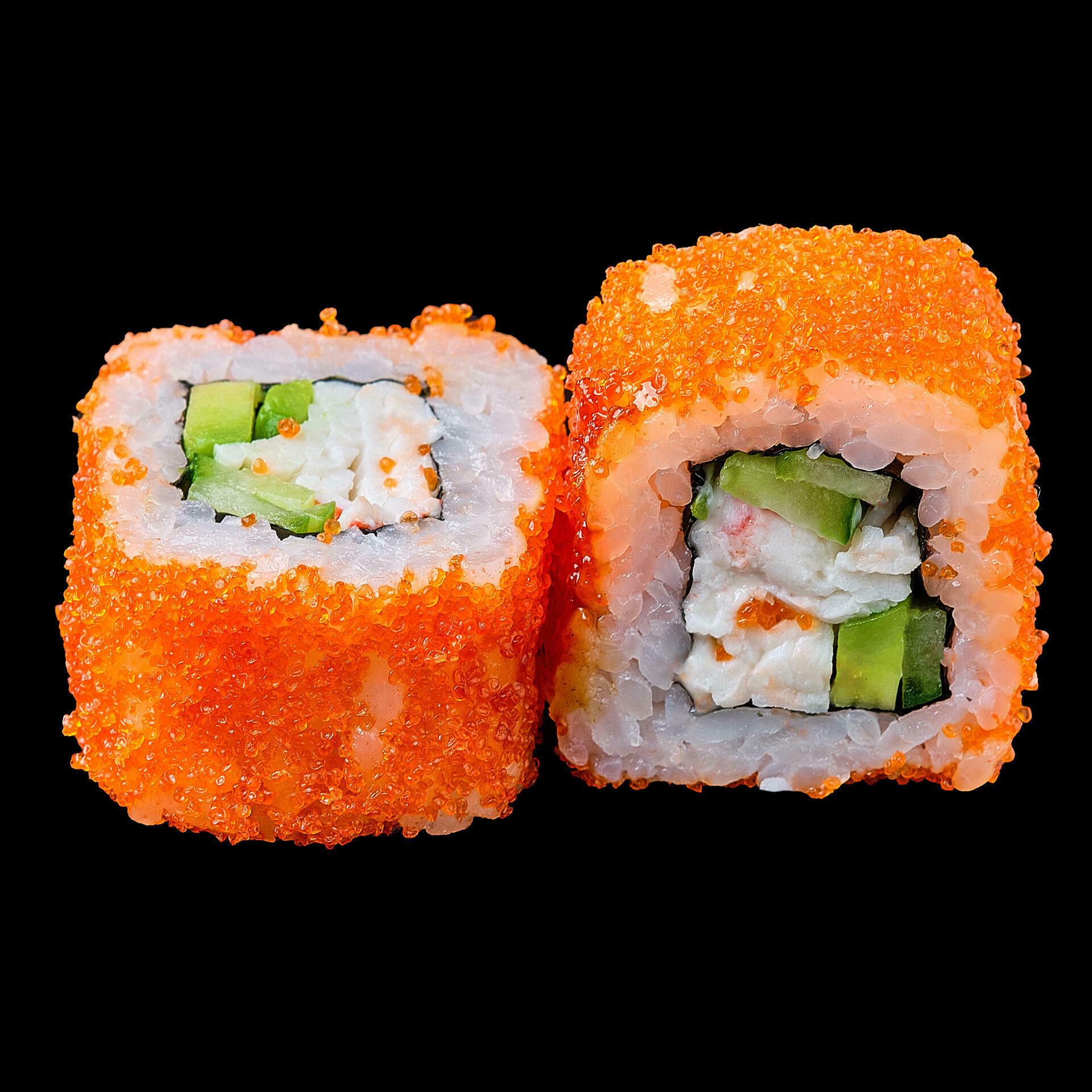 Роллы с крабом (имитация), авокадо, огурцом, икрой летучей рыбы, японским майонезом